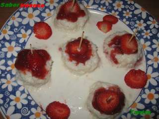 Eu Fiz Docinhos de Arroz Doce com Morangos - Morango