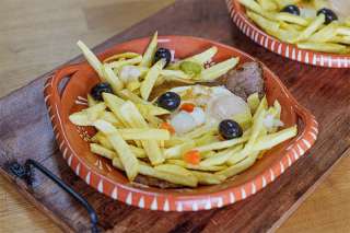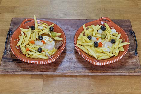 O Prego no Prato é um clássico da cozinha portuguesa: simples, rápido e cheio de sabor. Bifes tenros do pojadouro, fritos rapidamente em alho e louro, cobertos com um molho intenso de cerveja, mostarda e molho inglês, finalizados com um ovo estrelado no ponto certo. Acompanham batatas fritas crocantes, pickles e azeitonas que equilibram o prato com acidez e contraste. Uma receita prática, perfeita para um almoço rápido mas com sabor de tasca tradicional.