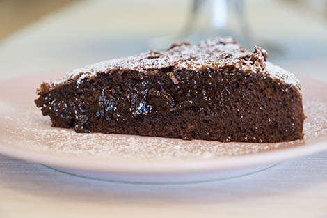 1. Leve ao lume em banho-maria, o chocolate e a manteiga Depois de tudo derretido, mexa muito bem e retire do lume. 2. Coloque o chocolate numa tigela. Com uma vara de arames, mexa um pouco e misture muito bem o açúcar. Parta os ovos e adicione 2 ovos de cada vez ao chocolate. Mexa muito bem entre cada adição. Por fim, junte a farinha e mexa muito bem. 3. Verta o preparado na forma. Leve ao forno pré-aquecido nos 200ºC e deixe cozer durante 15 minutos. Caso queria o bolo um pouco mais cozido, deixe 20 minutos. 4. Logo que o bolo esteja cozido por fora, retire-o. Podem comer este bolo, quente ou frio, mas para desenformarem, convém que esteja frio. Por fim, polvilhe o bolo com o açúcar em pó. A equipa do SaborIntenso.com deseja-lhe um bom apetite! Valores Nutricionais: Total: Calorias: 3811 kcal | Lipídios: 256g | Hidratos de Carbono: 308g | Proteinas: 66g Por fatia: Calorias: 272,2 kcal | Lipídios: 18,3g | Hidratos de Carbono: 22g | Proteinas: 4,7g Tempo de preparação: 30 minutos ![]()