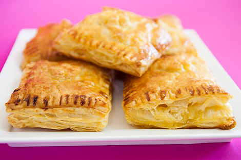 1. Polvilhe a bancada com farinha. Com a ajuda de um rolo, estenda a massa com a espessura de 7 mm. Corte quadrados com 10 cm. 2. Por cima de um quadrado de massa folhada, coloque no centro duas colheres de chá de doce de maçã e de gila. Pincele as bordas da massa com um pouco de ovo batido. Cubra com um quadrado de massa folhada. Aconchegue e acalque as bordas com um garfo. Repita o processo para os restantes folhados. 3. Coloque os folhados num tabuleiro de ir ao forno, previamente forrado com papel vegetal. Pincele os folhados com ovo batido. Se quiser, decore os folhados com a restante massa, cortada em figuras a gosto e pincele-a com ovo batido. 4. Leve ao forno pré-aquecido nos 190º e deixe cozinhar aproximadamente 25 minutos. Quando a massa estiver bem cozida e loirinha, retire. E estão prontos a servir. A equipa do SaborIntenso.com deseja-lhe um bom apetite! Valores Nutricionais: Total: Calorias: 3963 kcal | Lipídios: 205g | Hidratos de Carbono: 481g | Proteinas: 56g Por folhado: Calorias: 396,3 kcal | Lipídios: 20,5g | Hidratos de Carbono: 48,1g | Proteinas: 5,6 Tempo de preparação: 40 minutos Custo total: 2.60 € | Custo por folhado: 0.25 € ![]()