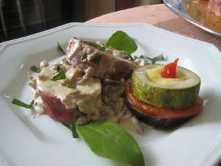 Original: Neuza Costa Experiencia por: Leonel Azevedo Fazia tempo que estava de olho nesta receita. Hoje resolvi fazê-la. Ficou excepcional. Servi com legumes grelhados, e reguei com creme de cogumelos "shimeji" frescos. Obrigado Neuza Aqui, pronto para ir ao forno............ ![]() Aqui, já tostadinho......... ![]() E como não podia deixar de ser, o meu pratinho............ ![]() Espero que gostem. Bom Apetite |