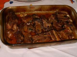 Num tacho faz-se um molho juntando o vinho, os alhos, o azeite, o sumo de limão e a massa de pimentão. Tempera-se com sal e pimenta e deixa-se ferver. Numa assadeira, deita-se o entrecosto e tempera-se com um pouco de sal. Polvilha-se com os coentros. Depois de fervido o molho, rega-se o entrecosto com o mesmo e leva-se ao forno até tostar dos dois lados. Se for necessário vá acrescentando água aos poucos. ![]() FOTOS: SarinhaT |