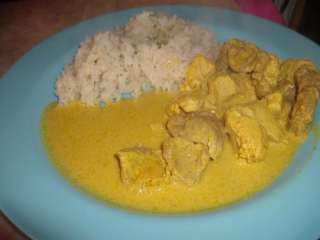Temperar os cubos de frango com os dentes de alho picados, sal e um pouco de sumo de limão. Num tacho colocar um pouco de azeite e aquecer. Juntar o frango temperado e deixar fritar. Enquanto isso, misturar numa tigela as natas com o caril. Quando o frango estiver bem coradinho juntar as natas, envolver e deixar levantar fervura. Acompanhei com arroz branco. Bom apetite! |