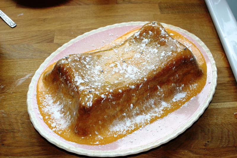 Batem-se as claras em castelo bem firme. Junta-se o açucar e continua-se a bater,como para suspiro. Por fim envolve-se a amêndoa. Forra-se uma forma de bolo inglês com manteiga,e leva-se o bolo ao forno a 170º cerca de 30m. Depois de cozido desenformar e cobrir com os ovos moles. Nota:Um bolo muito simples de fazer e muito húmido.Uma delicia para quem gosta do sabor da amêndoa. |