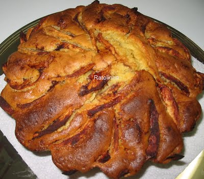 Descasque as maçãs e corte-as em gomos. Misture o açúcar com a canela, e deite sobre as maçãs e deixe assim 1 hora pelo menos. Entretanto, bata a manteiga com o açúcar, junte as gemas, depois as claras batidas em castelo e por último a farinha e o fermento. Unte uma forma com manteiga e polvilhe-a com farinha. Deite na forma metade da massa, depois espalhe metade das maçãs, disponha de seguida a restante massa, e, por fim, termine com as maçãs. Leve a cozer em forno pré-aquecido a 180ºc. ![]() FOTOS: Ratolinha |